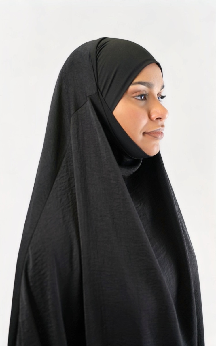 Dieser Hijab wird aus einer hochwertigen, speziellen Faser gefertigt und ist so geschnitten, dass er sich dem Kopf ergonomisch anpasst – für optimalen Halt und maximalen Tragekomfort.