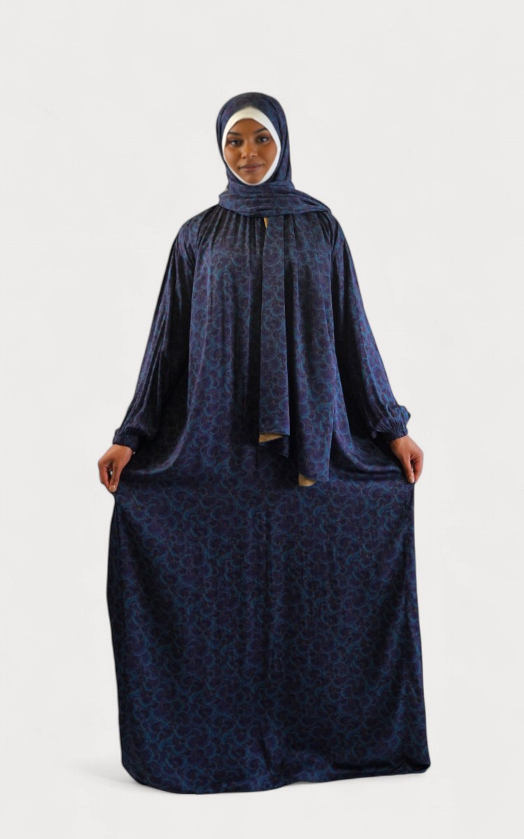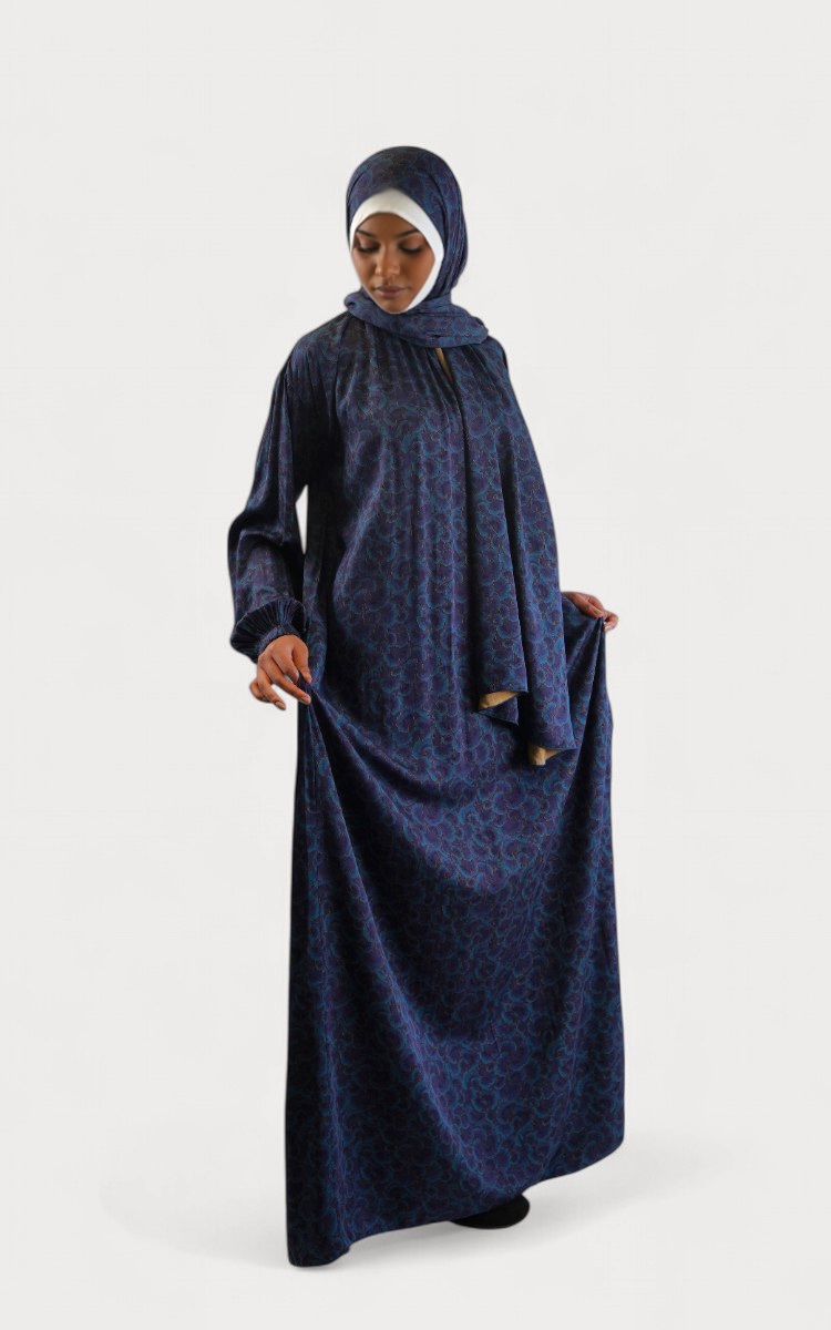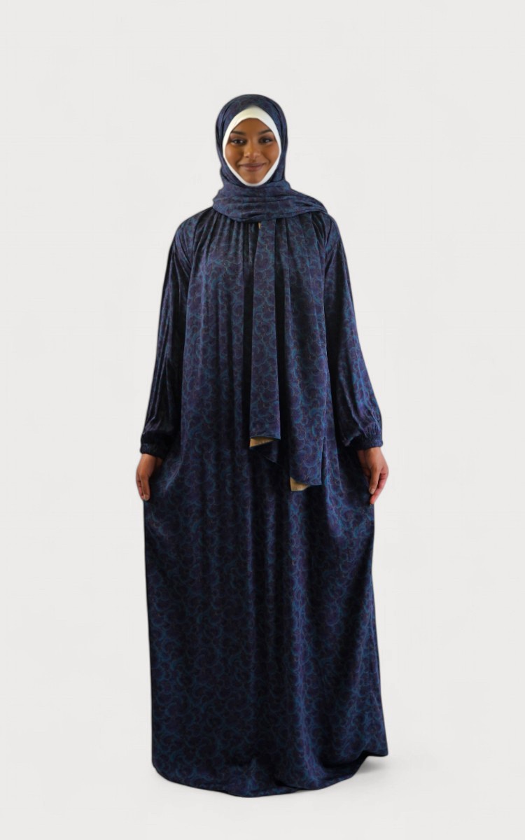 Максимальный комфорт и лёгкость для намаза, дома и прогулок. Это длинное платье создано с заботой о потребностях современной мусульманки. Лёгкая и дышащая ткань купро-стейпл обеспечивает свободу движений, не просвечивает и не требует поддевки. Подходящий по цвету шарф завершает образ, делая его практичным и цельным. Отличный выбор для намаза, повседневной носки и путешествий.